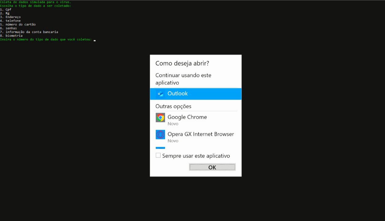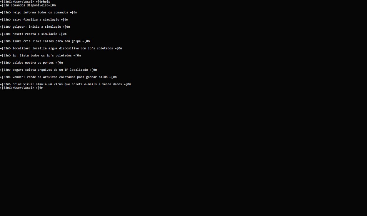 Este arquivo não é um vírus. Ele é um simulador de golpes virtuais criado com o objetivo de educar e conscientizar sobre as táticas usadas por crimes. Ao repeti-lo, você verá exemplos de como os golpes ocorridos, o que vai te ajudar a considerar essas situações no mundo real e se proteger.